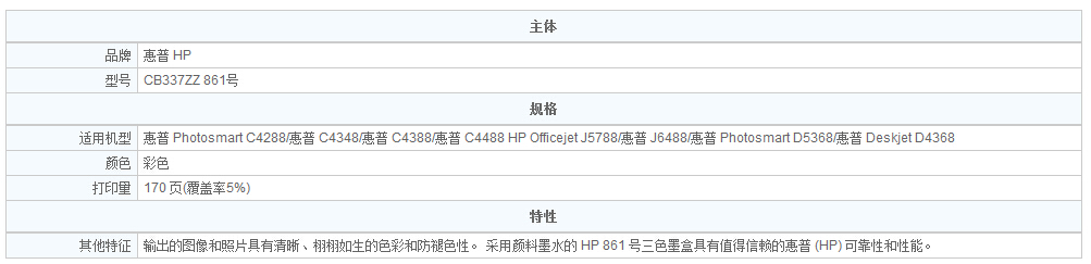 惠普(HP)CB337ZZ 861號彩色墨盒