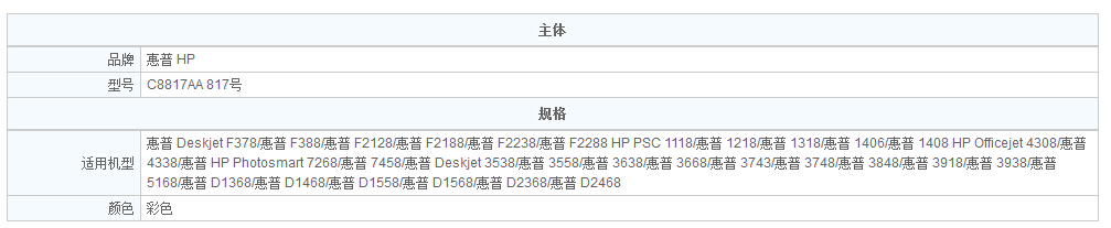 惠普(HP)C8817AA 817號彩色墨盒
